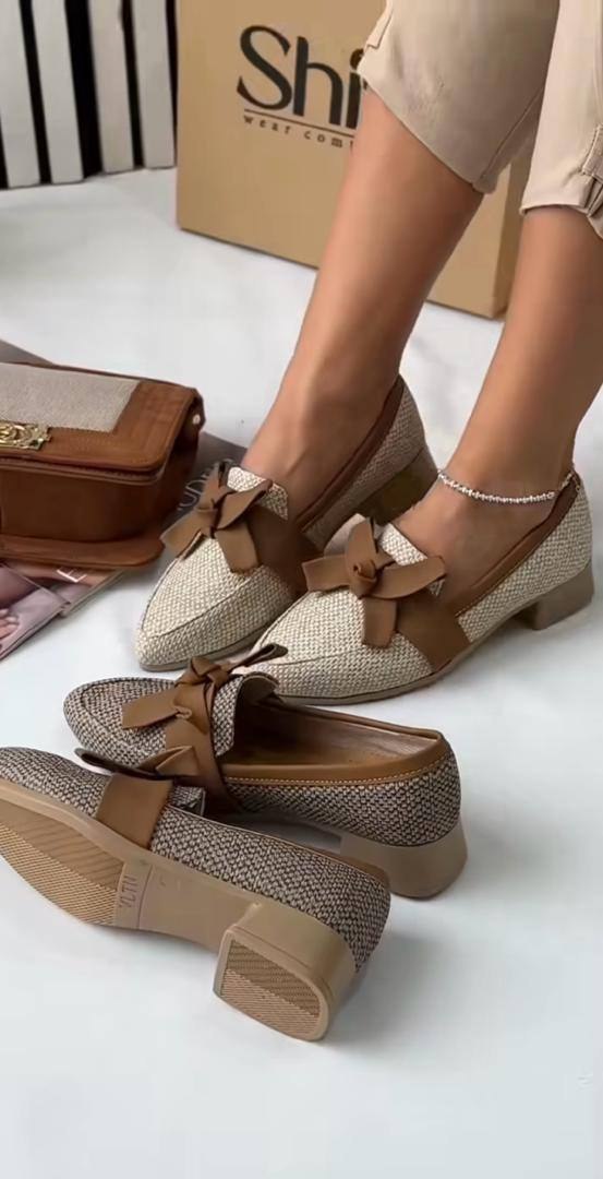 کالج پاپیون بسیار پرفروش و پرطرفدار🥿 بسیار شیک خوشپا راحت رنگبندی : کرم -قهوه ای جنس رویه : کنفی قالب نیم سایز بزرگ